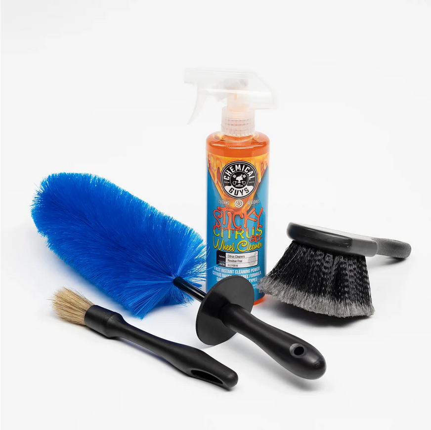 If you are going to clean one thing to make your car look better its the wheels. Clean wheels make such a difference, and having the right gear makes it so much easier. At a basic level you need a decent wheel cleaner and three different quality brushes to reach the different parts of the wheel easily, a barrel brush for between the spokes and to clean the full barrel, a soft flat brush to clean the surface of the wheels, and a quality detail brush to clean around the wheel nuts and tricky corners of the mags. With this range if brushes the job is easy, take one away and you will have a section of the wheel that you spend ages trying to clean. its a lot easier with the right gear. You get all this in wheel kit 1.