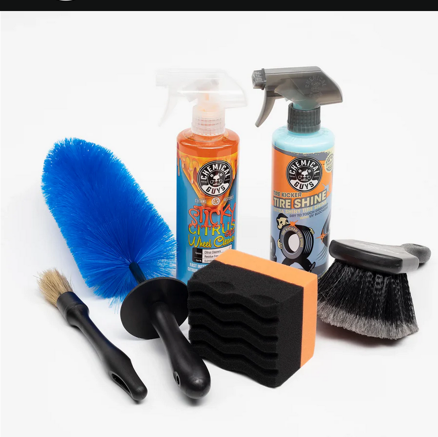 If you are going to clean one thing to make your car look better its the wheels. Clean wheels make such a difference, and having the right gear makes it so much easier. At a basic level you need a decent wheel cleaner and three different quality brushes to reach the different parts of the wheel easily, a barrel brush for between the spokes and to clean the full barrel, a soft flat brush to clean the surface of the wheels, and a quality detail brush to clean around the wheel nuts and tricky corners of the mags. With this range if brushes the job is easy, take one away and you will have a section of the wheel that you spend ages trying to clean. its a lot easier with the right gear. You get all this in wheel kit 1.